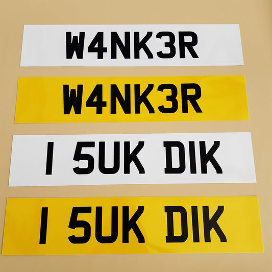 2 Joke Number Plate Stickers With "I 5UK DIK"