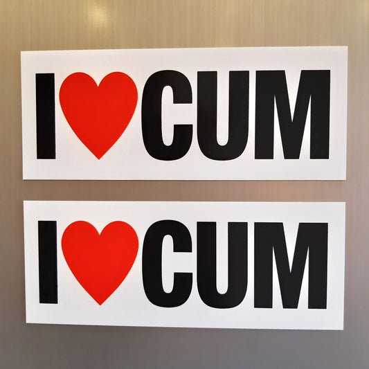 2 Joke Magnetic Car Stickers With "I LOVE CUM"
