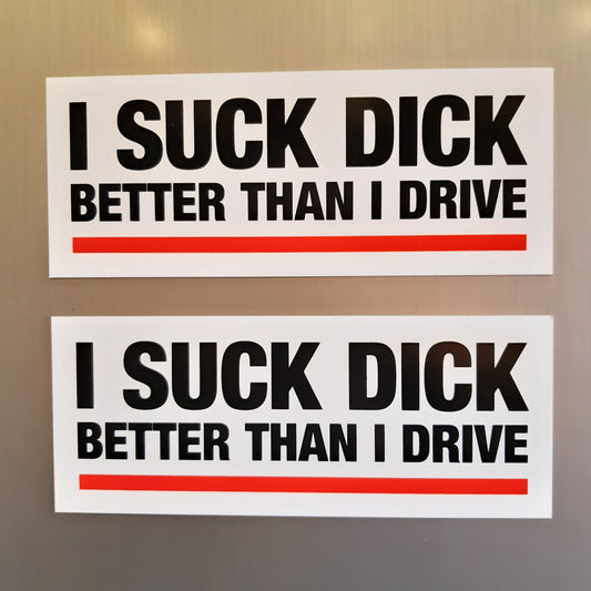 2 Joke Magnetic Car Stickers With "I SUCK DICK"